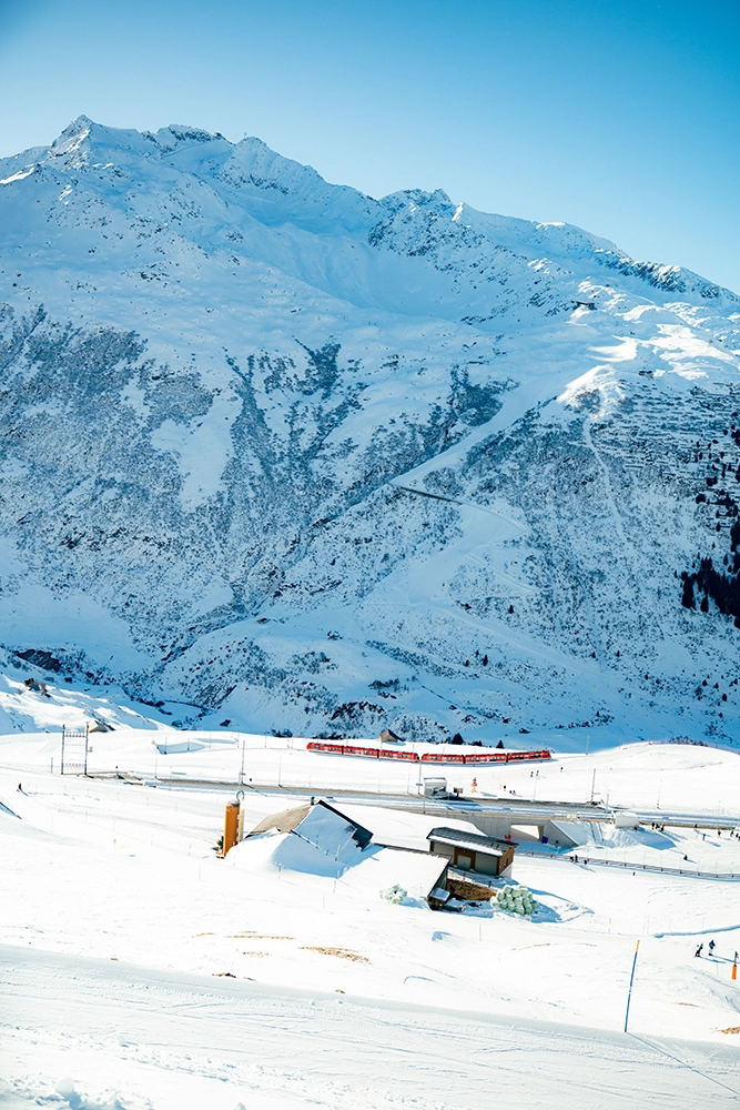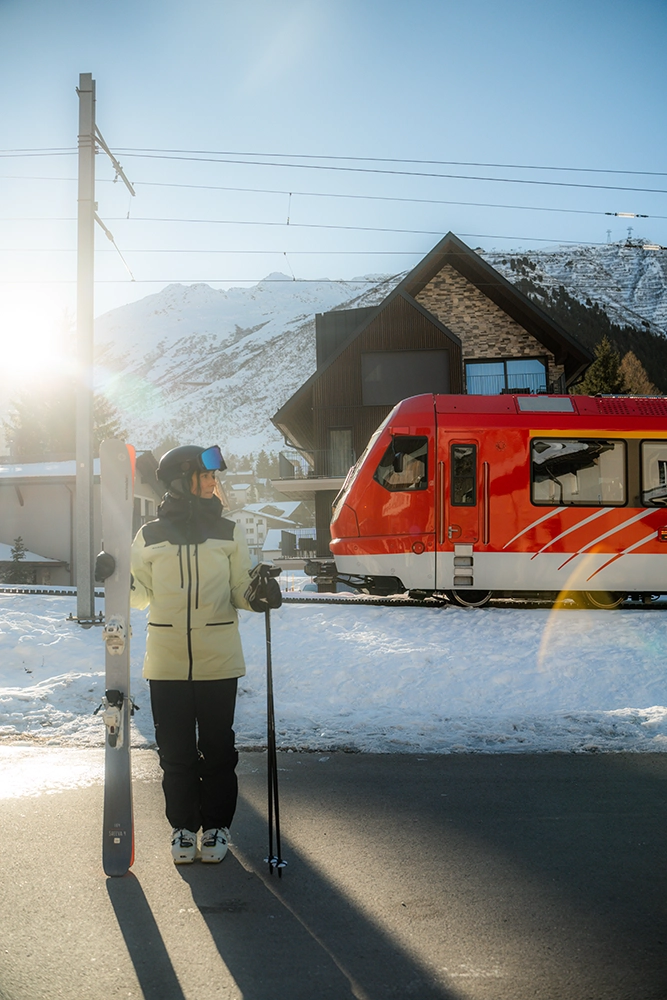 The lower station of the Gütsch Express is directly accessible from the train station via an underground passage, no shuttle or car needed.